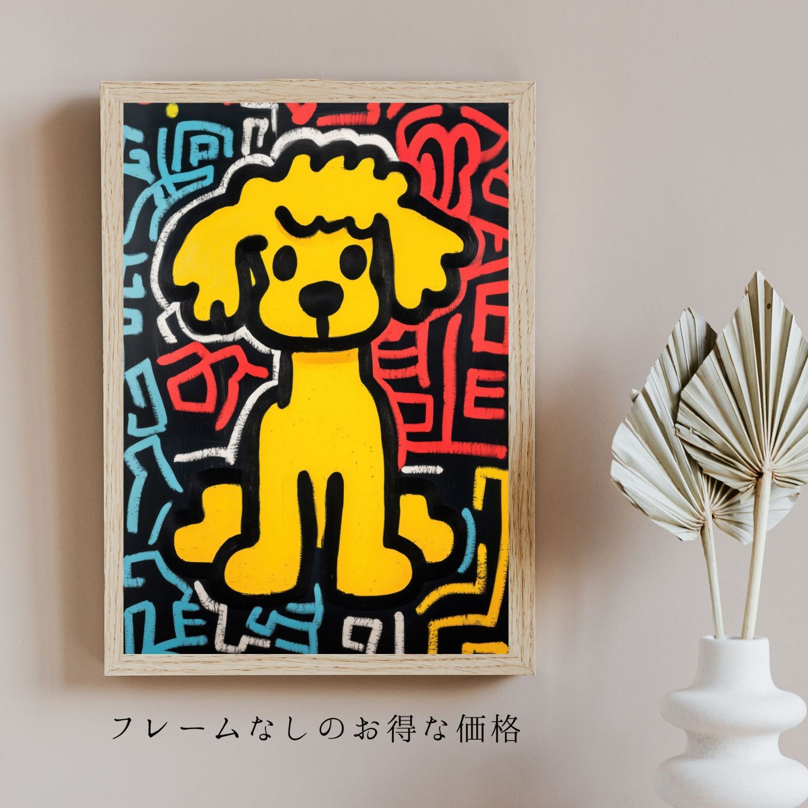 そんな思いを込めた「幸せなドッグライフ」をテーマにした、カラフルでユニークなトイプードル犬がおしゃれなドッグアートポスターです。