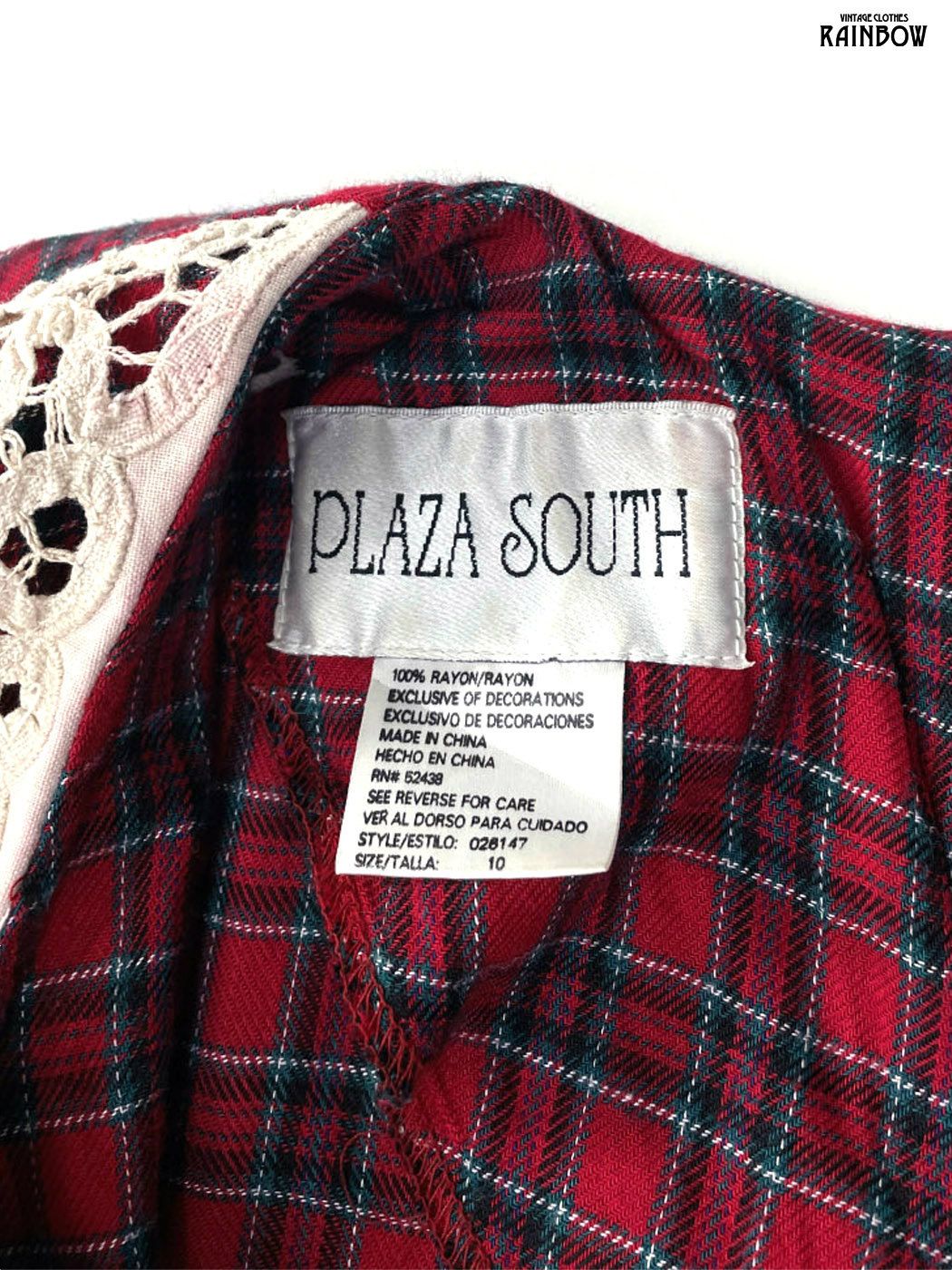 古着 PLAZA SOUTH レース チェック柄 ロング丈 長袖 ワンピース 赤 otu 2508054
