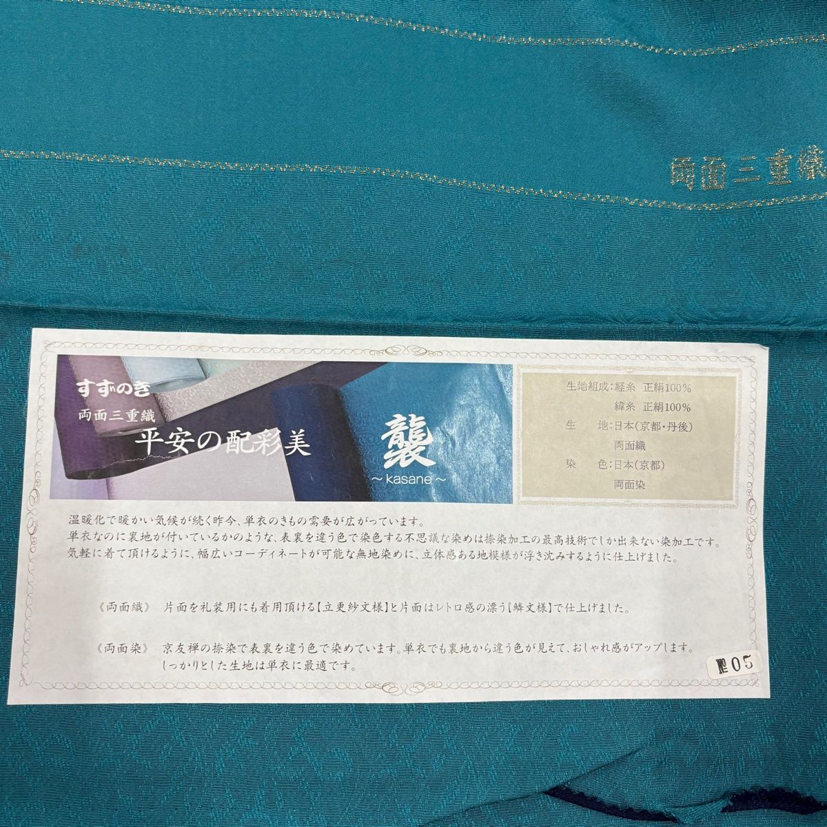 色無地 身丈173.5 cm 裄丈70.5 L 単衣 地紋 青緑 正絹
