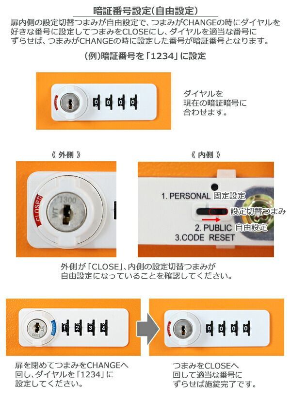 各扉の暗証番号を自由に設定できます。