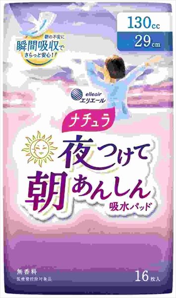 -18点セット ナチュラ夜つけて朝あんしん吸水パッド29cm130cc 大王製紙 生理用品