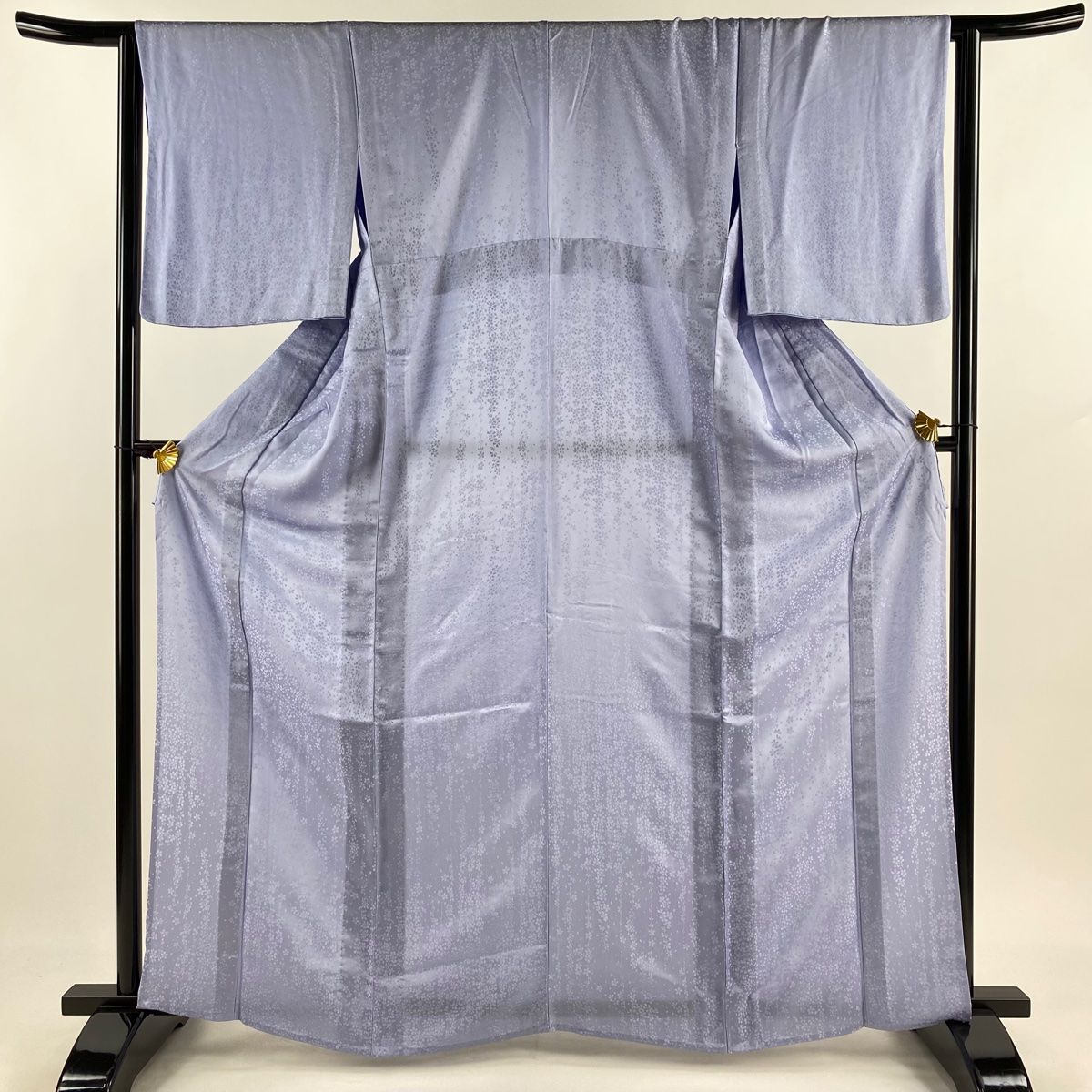 色無地 身丈165 cm 裄丈62 S 単衣 地紋 青紫 正絹