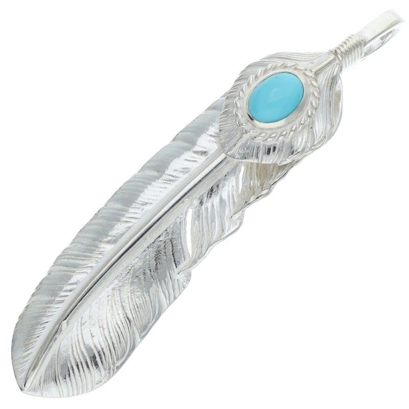 【商品名】 上銀銀縄ターコイズ特大フェザー 左向き ネックレストップ