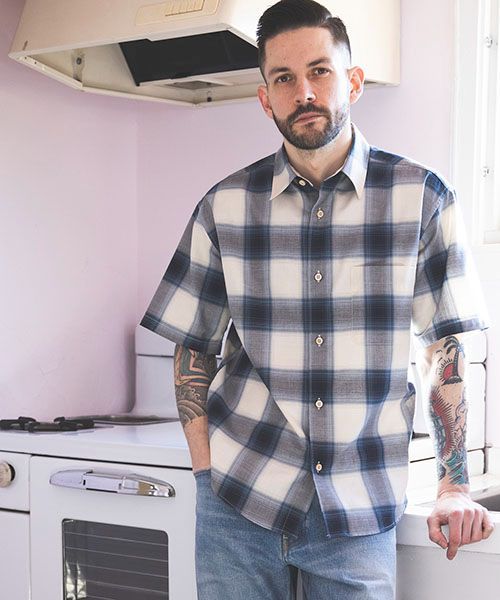 MR.OLIVE | ORGANIC COTTON OMBRE CHECK REGULAR COLLAR S|S SHIRT ミスターオリーブ|オーガニックコットン オンブレーチェックシャツ