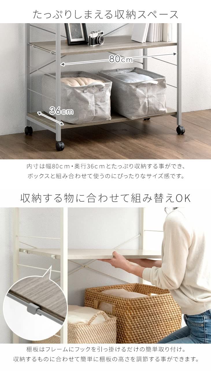 スチール キャスター付 可動棚 ラック 頑丈設計 幅80 cm グレイッシュウッド 5段ラック オープンラック 79601 タンスのゲン