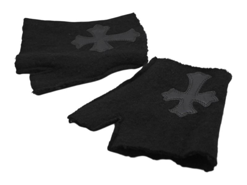 CHROME HEARTS クロムハーツ ミッティング フィンガーレスグローブ クロスパッチ 指切り手袋 ブラック カシミヤ レザー 4 b 007713