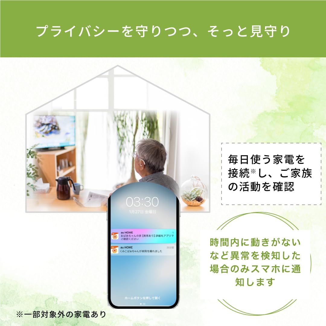【利用登録】1つのau HOME契約に対し最大2台のかんたん見守プラグ及びあんしんウォッチャー/あんしんウォッチャー LEを登録、利用可能