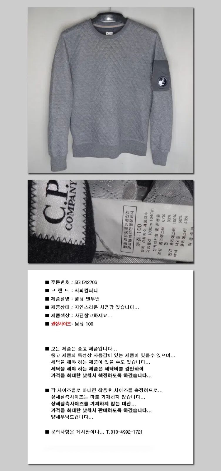 CP会社 男性 100 キルティングスウェットシャツラウンドTシャツ ダルサンレリーフ 154