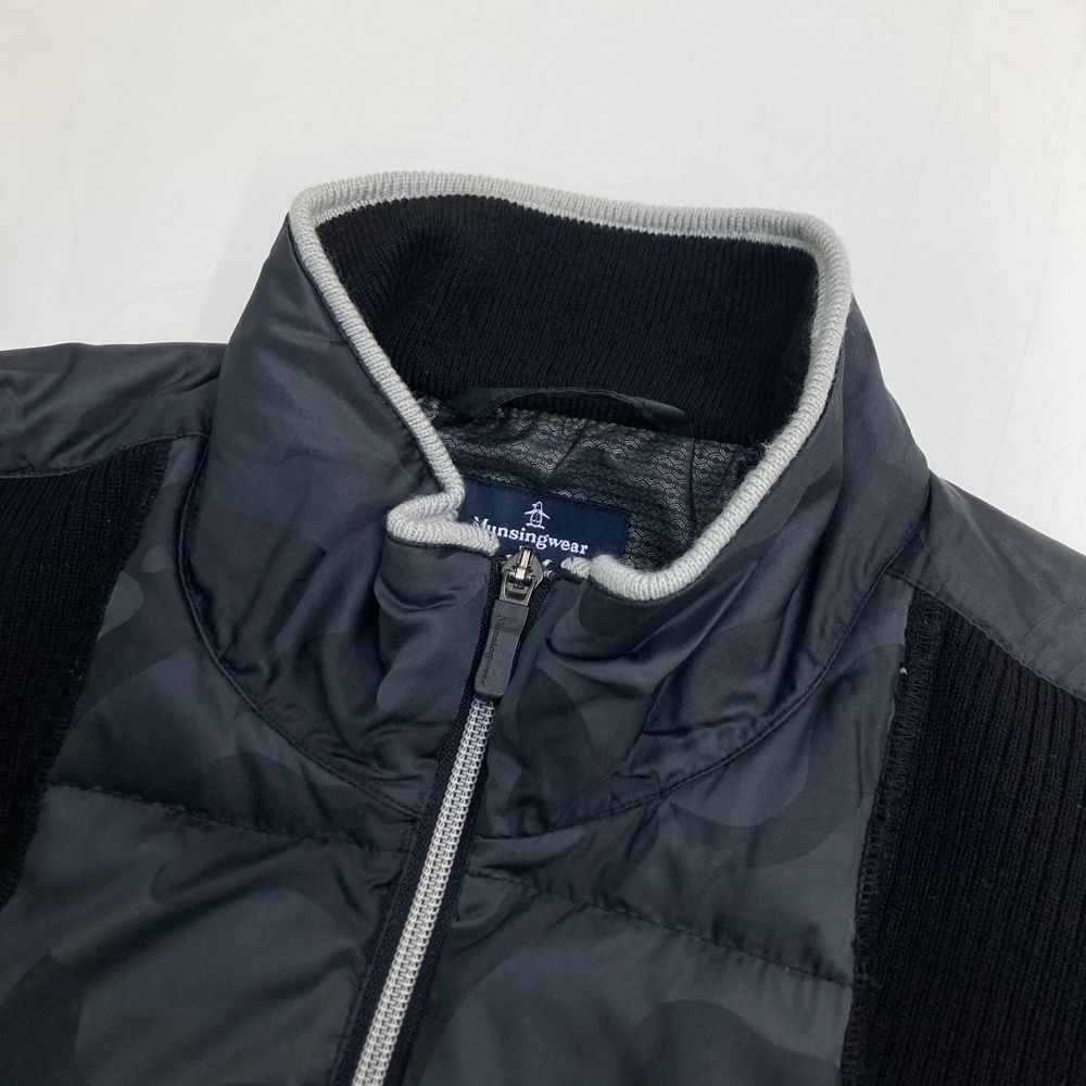 サイズ LL MUNSING WEAR マンシングウェア ニット切替 ダウンジャケット カモフラ柄 ブラック系 ゴルフウェア メンズ ストスト