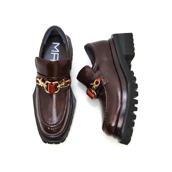 MANA マナ ダブルフック ローファー レディース 茶 厚底 革 551206 ダークブラウン 37 23.5 cm エッジソール カッコいい 履きやすい 大人 おしゃれ