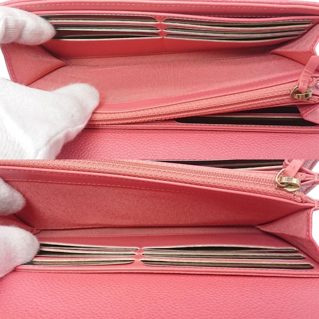 CHANEL マトラッセ キャビアスキン ピンク CoCoマーク 長財布 シリアルシール カード