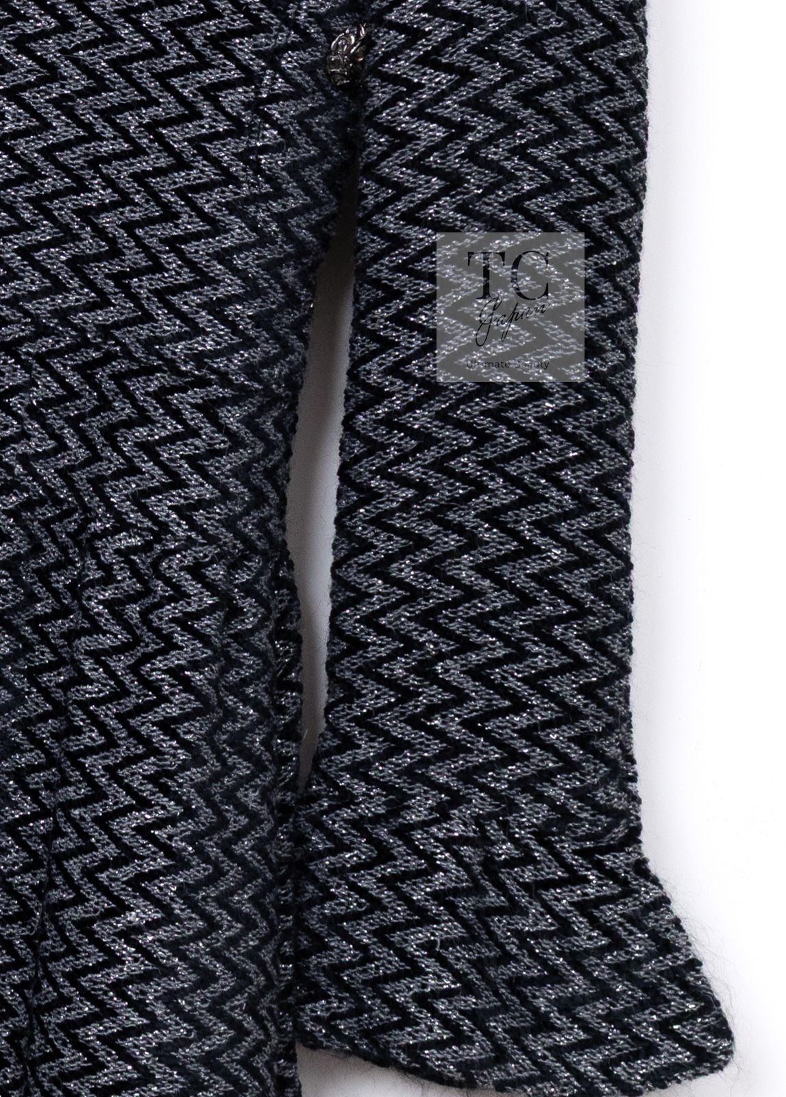 90万シャネル ワンピース コート CHANEL グレー ブラック メタリック ジッパー ツイード ランウェイ登場 カール ラガーフェルド 超 36