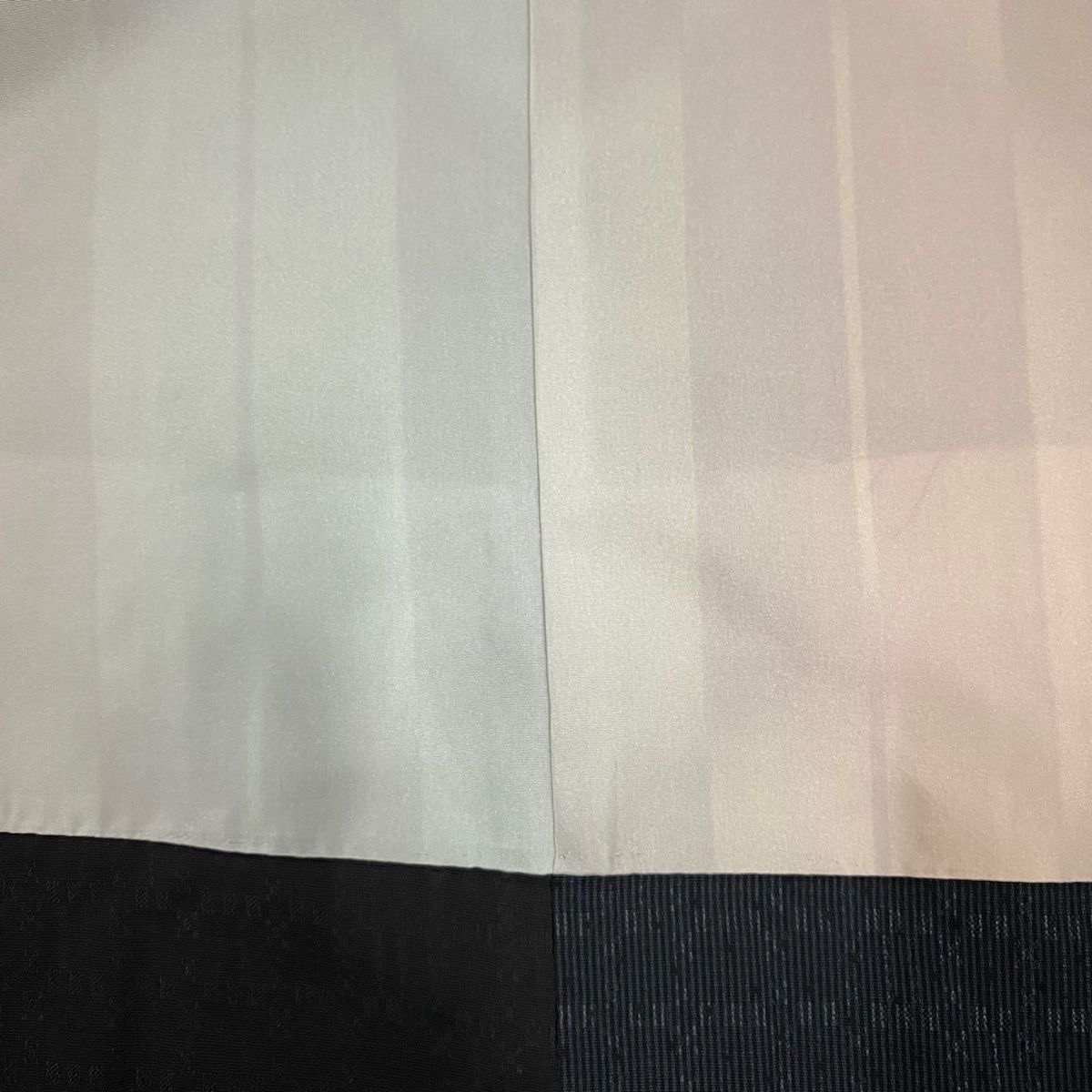 商品の素材につきましては、当社熟練のスタッフにて外観・感触・重量等により商品説明の【素材】記載のとおりと判断しておりますが、リユース品のため完全な断定はできかねます。また、【素材】の表示は、表地に関する表示で、胴裏・八掛などの裏地に関する表示ではありません。誠に恐れ入りますが、ご理解いただいた上でご購入をお願いします。