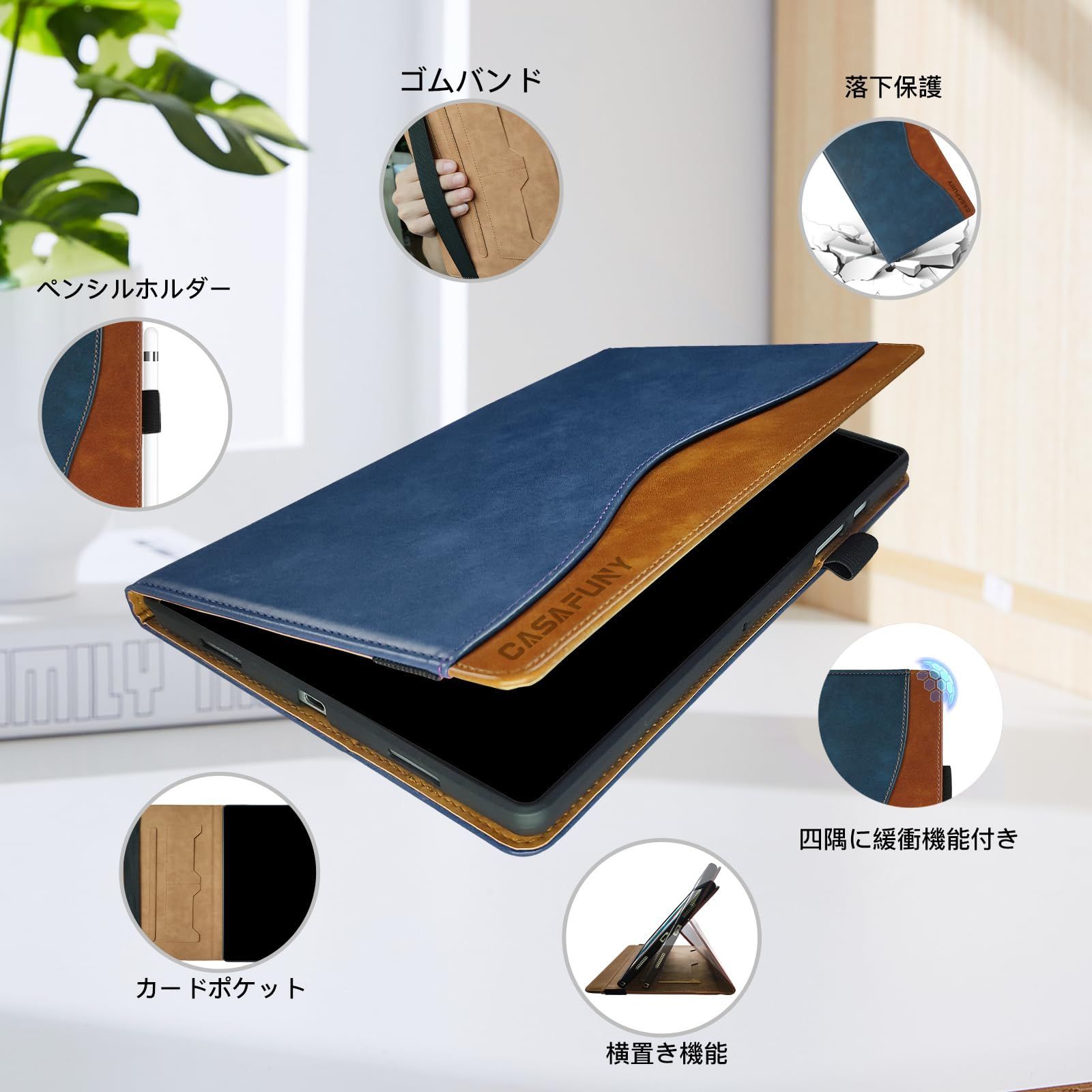 CASAFUNY iPad 10.2 ケース ipad 9世代 ケース 10.2インチ ipad ケース ipad 7世代 ケース ipad 第8世代 ケース アイパッド ケース 第9世代 ペン収納 ipad 第7世代 ケース 2つ折スタンド 衝撃吸収 TPU スタンド機能付き iPad 第 9 / 8 / 7世代 ケース 2021 2020 2019 保護カバー PUレザー カード収納 青色