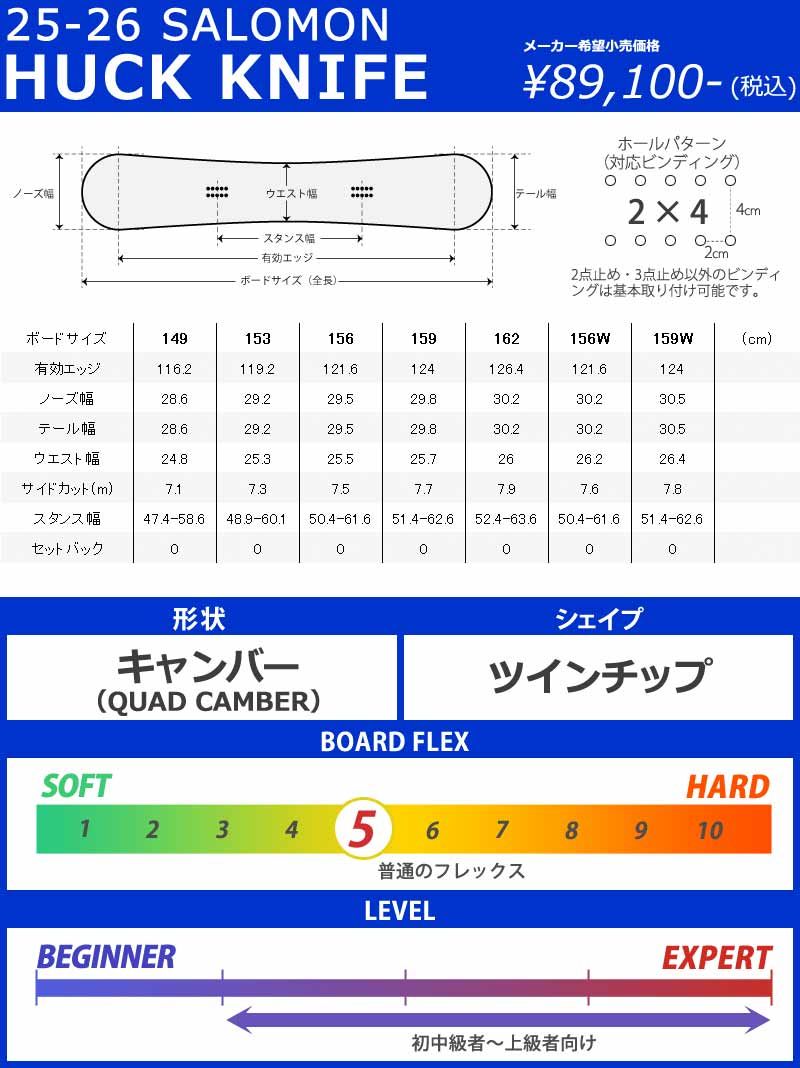 25-26 SALOMON|サロモン HUCK KNIFE ハックナイフ メンズ スノーボード パーク 板 2026