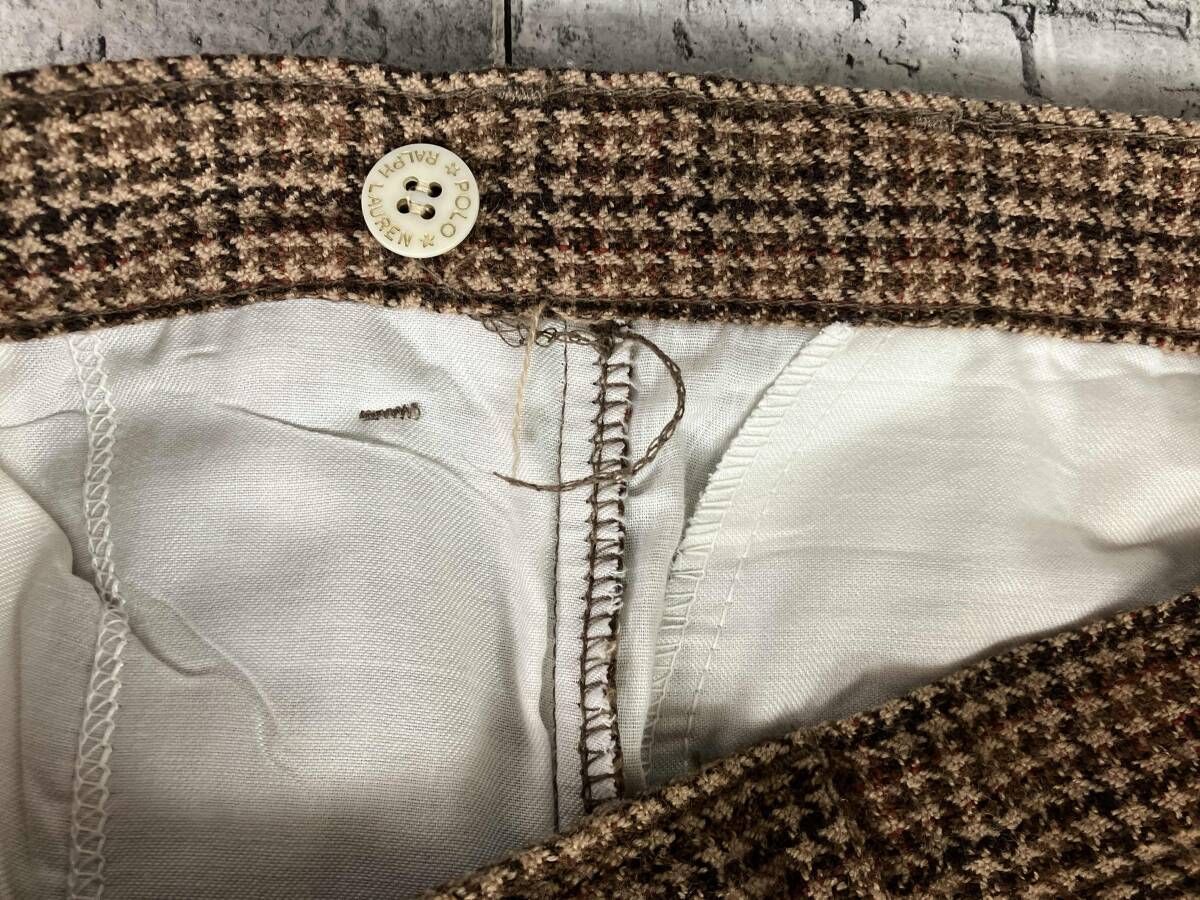 POLO RALPH LAUREN ポロラルフローレン 90 s ウール タック 千鳥格子柄 ロングパンツ サイズW 32 L 36 ブラウン