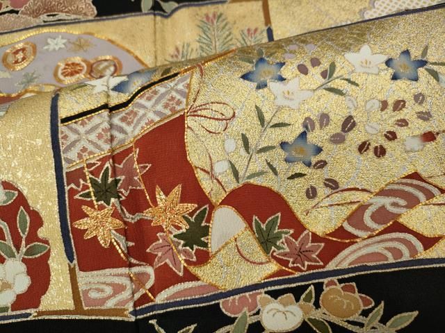 平和屋着物●豪華黒留袖 駒刺繍 几帳扇面花文 金彩 正絹 ut