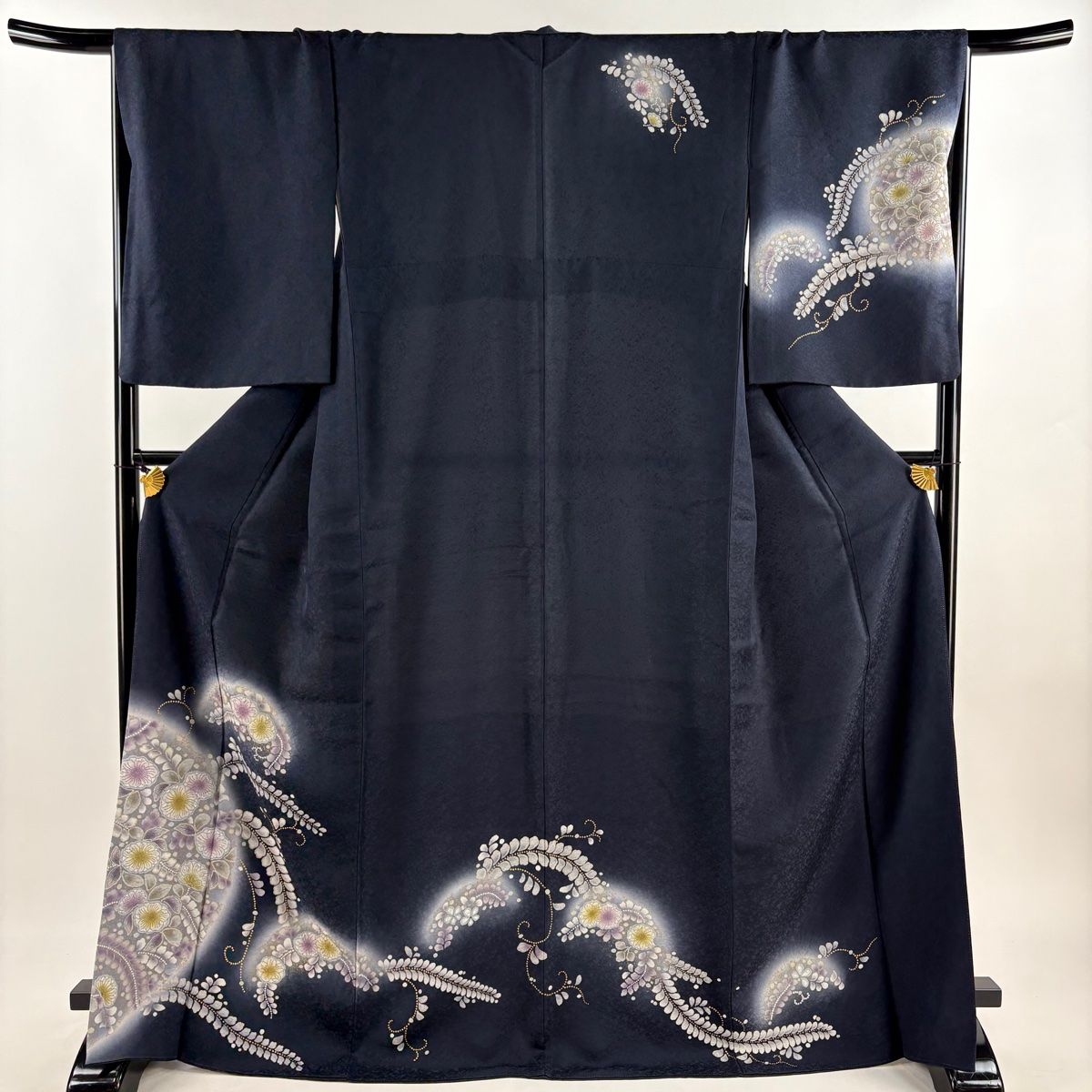 訪問着 身丈171.5 cm 裄丈68.5 L 袷 辻が花柄 金彩 ぼかし 濃紺 正絹 秀品