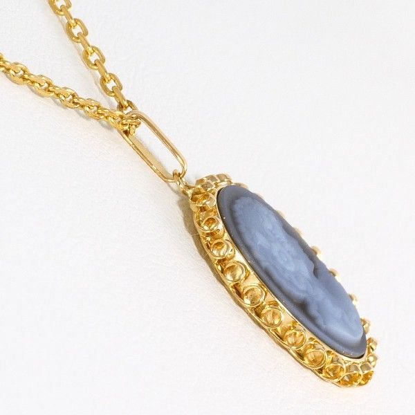 K 18 YG ネックレス necklace ストーンカメオ 総重量約4.8 g 約40 cm