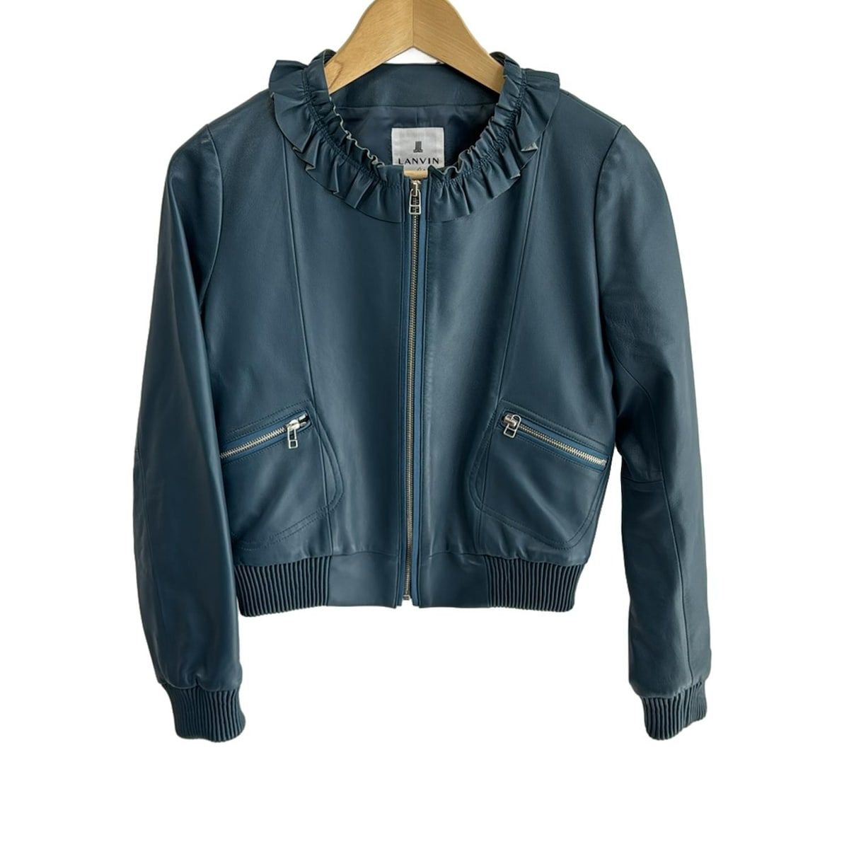 LANVIN en Bleu ランバンオンブルー ライダースジャケット サイズ38 M レディース - ネイビー 長袖 レザー フリル 春 秋