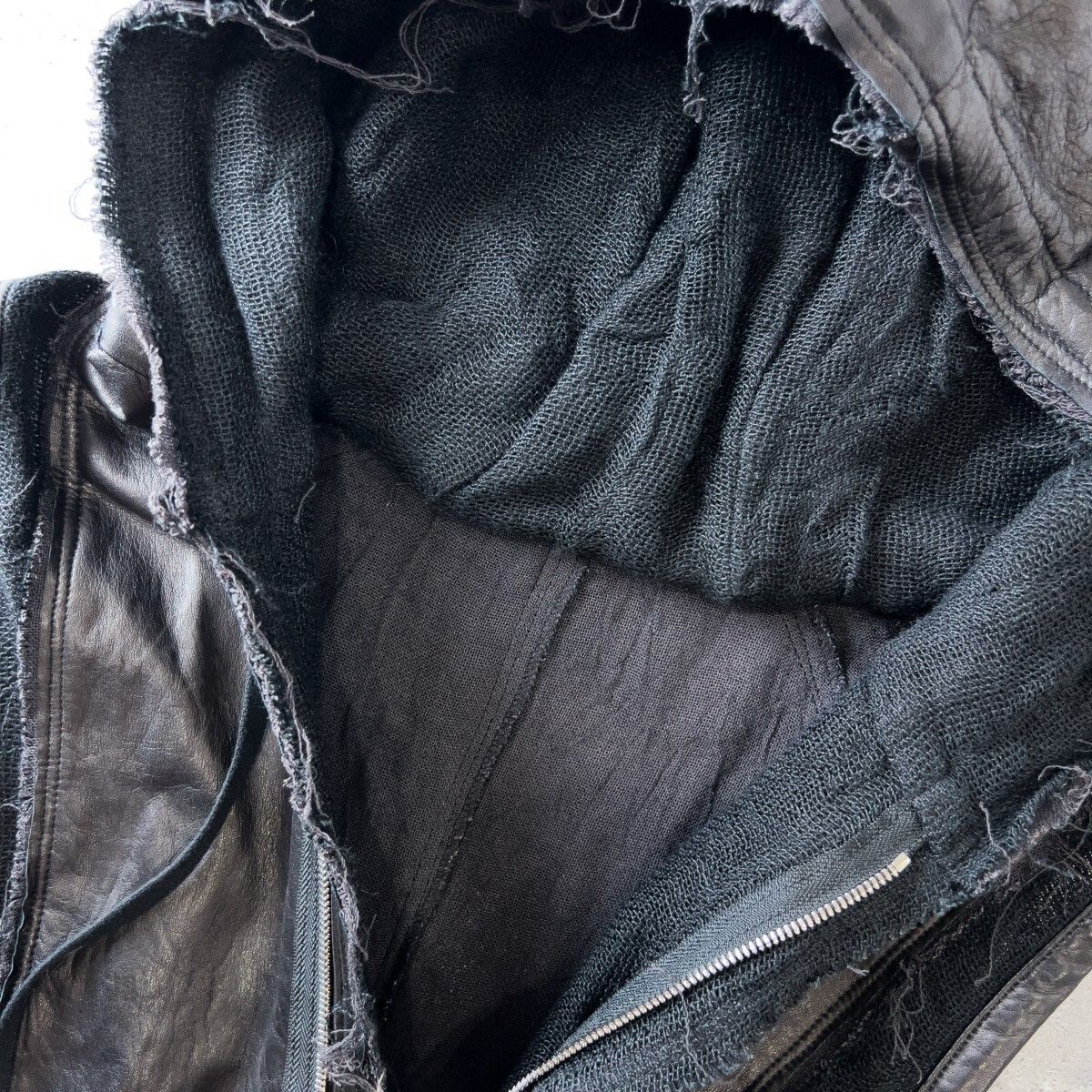 bajra バジュラ カットオフ ジップアップ レザー ベスト フーディー メンズ 3 L 黒 ブラック 本革 牛革 麻 切替 モード