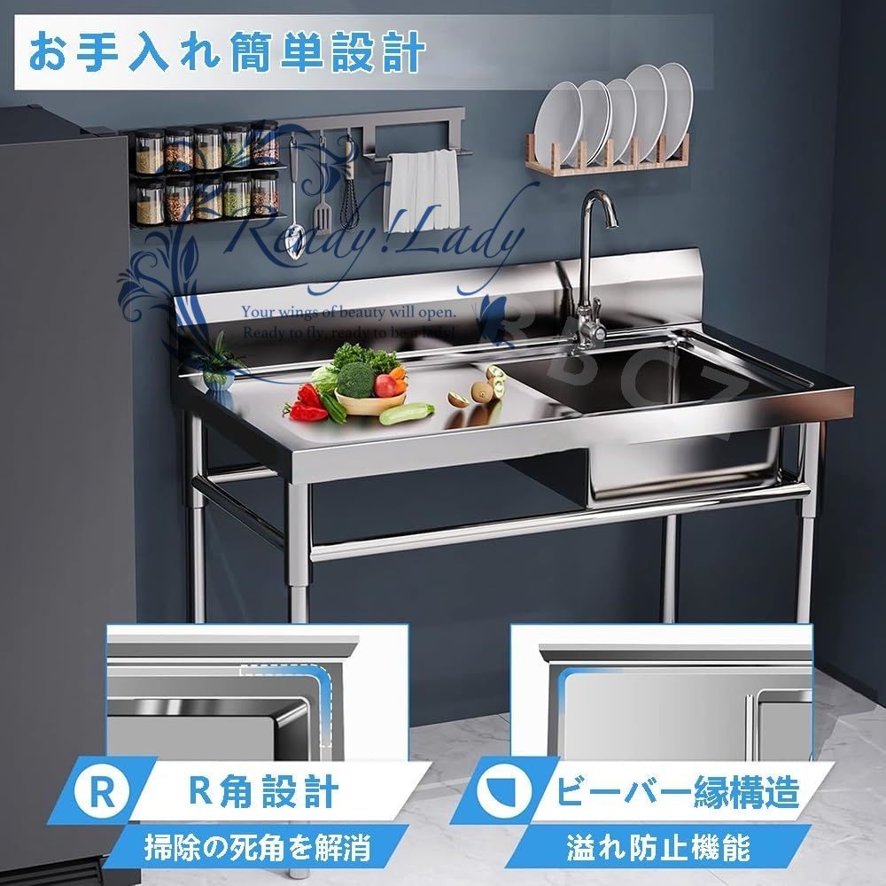 【お手入れ簡単】 当社のステンレスシンクは、レストラン、バー、または清潔さが求められるあらゆる空間の水回りに最適です。曲線コーナー設計により、隅々まで清潔で衛生的な状態を保てます。