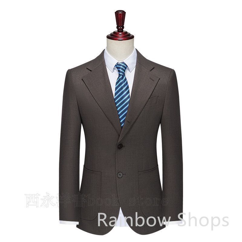 「ビジネスマンの必需品、ダークブラウンのスーツセットアップ。