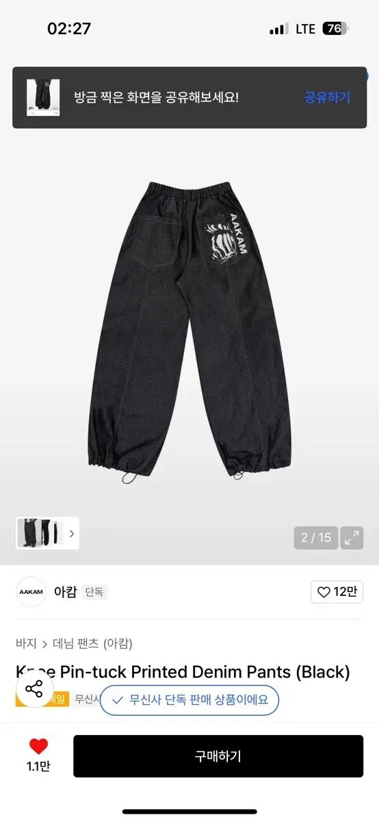 Knee Pin ー tuck Printed Denim Pants アーカムパンツ 1