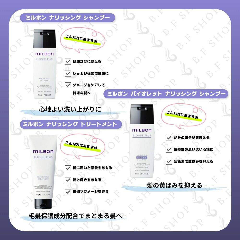 セット品 ミルボン ナリッシング シャンプー - トリートメント 2500 ml グローバル ブロンドプラス milbon LSC