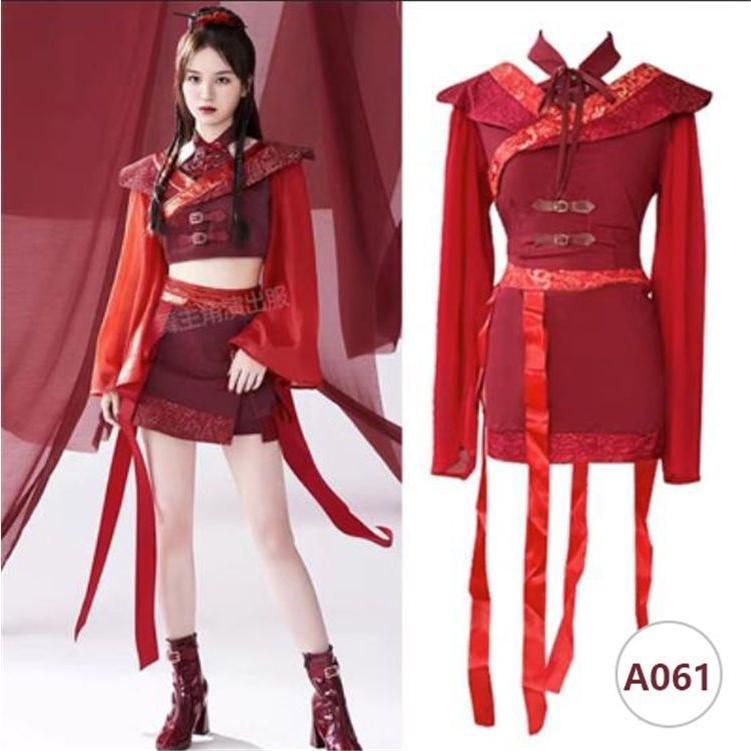 大人 ダンス衣装 セットアップ 赤系 漢服 チャイナ風 古典風 中華 ジャズ k-pop 上下 ダンスウェア JAZZ おしゃれ 演出服 発表