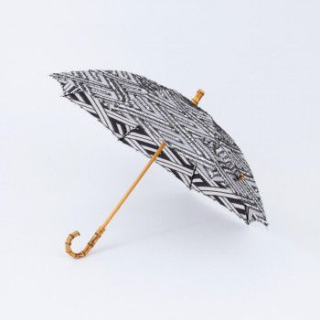 織物の産地、兵庫県西脇市で織られたジャカード生地を使用した晴雨兼用傘です。使用する生地は表面の柄だけでなく、開いたときに内側の柄もきれいに見えるよう、生地にこだわりました。UV撥水加工を施した晴雨兼用の傘は、熟練した職人の手作業で丁寧に生地の裁断や縫製・張り付け作業や、部品の取り付けに至るまで完成に手間と時間をかけて生産しています。