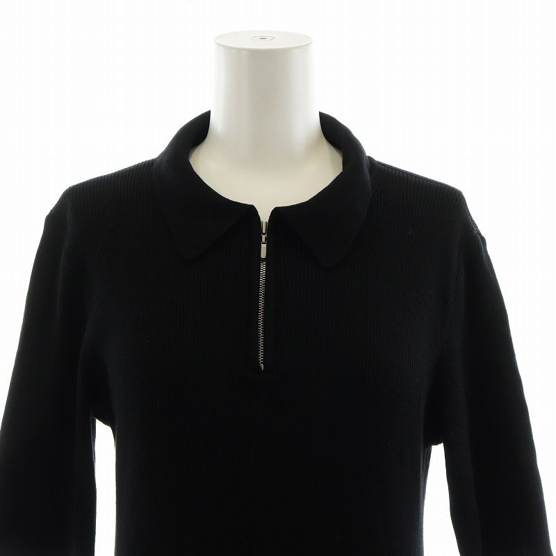 フォクシーニューヨーク FOXEY YORK 24 SS ニットドレス ダミアン Knit Dress Damian ワンピース ミモレ ロング 5分袖 切替 40 M 黒 ブラック 44265 AN 17