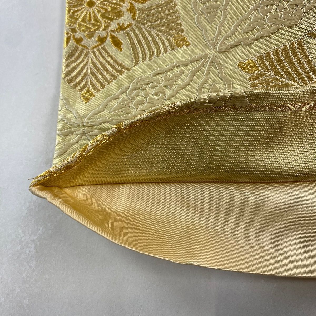 袋帯 秀品 若松 花 金糸 刺繍 金色 六通 正絹