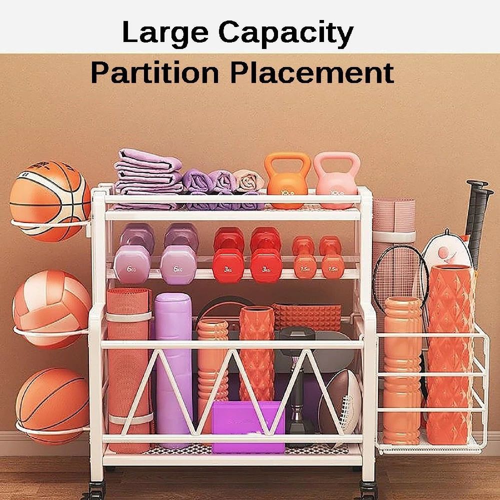 ホームジム収納ラッ オールインワンワークアウト機器収納 ヨガマット収納ラッ 車輪付きジム収納ラック ヨガマット ローラー ダンベル ケトルベル レジスタンスバンドなどを収納できるホームジム用ウェイトラック ホームジムワークアウト用