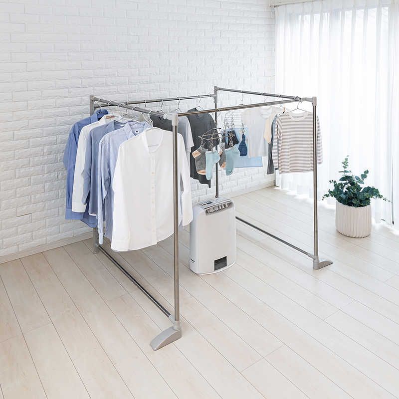 便利な専用のステンレス伸縮竿付きで、使用しない時は干し部に掛けて収納できます。