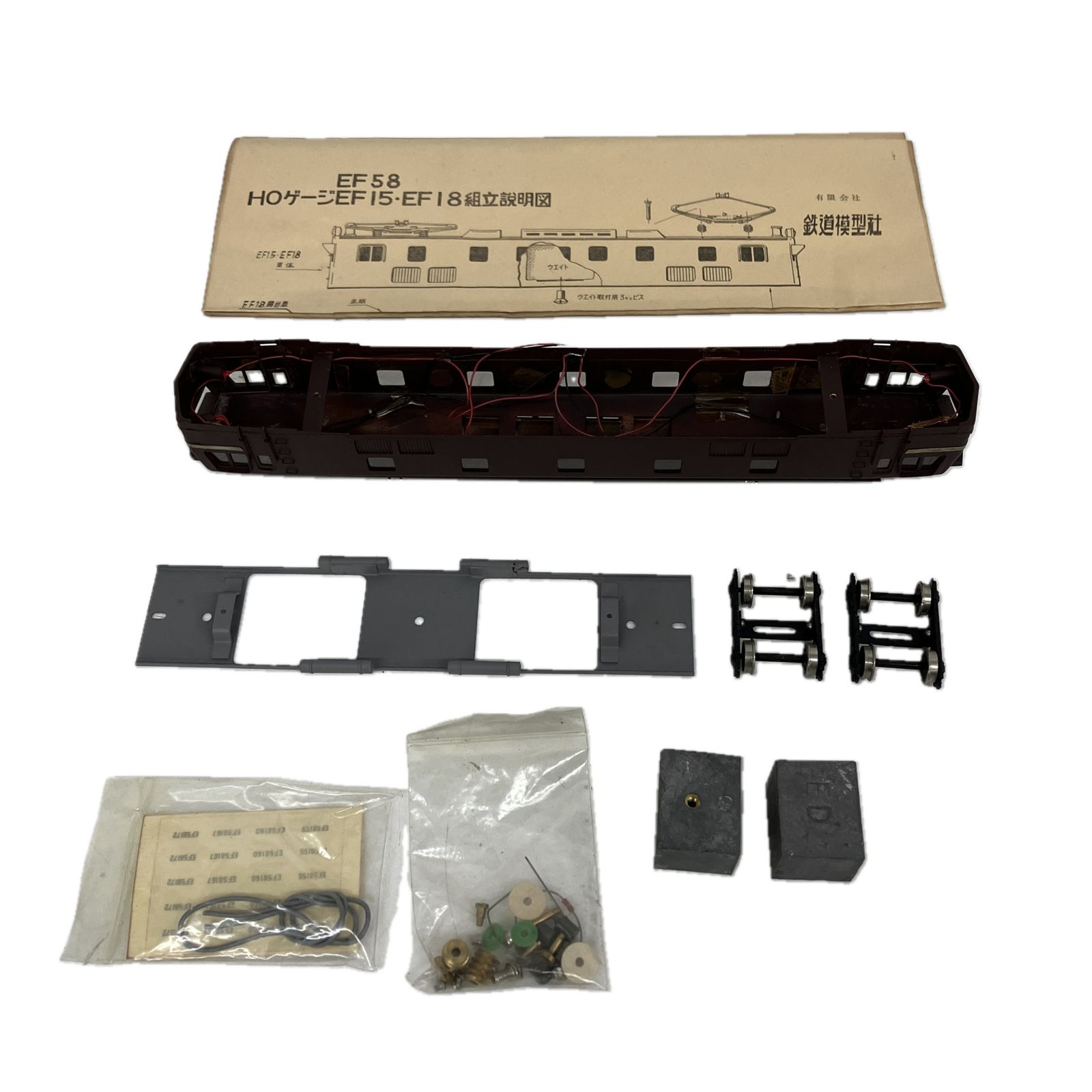 鉄道模型社製の電気機関車 EF18およびEF15の組立キットと思われます。真鍮(ブラス)素材を使用したHOゲージ(16番ゲージ)の鉄道模型キットで、上級者向けの精密なディテールが特徴です。