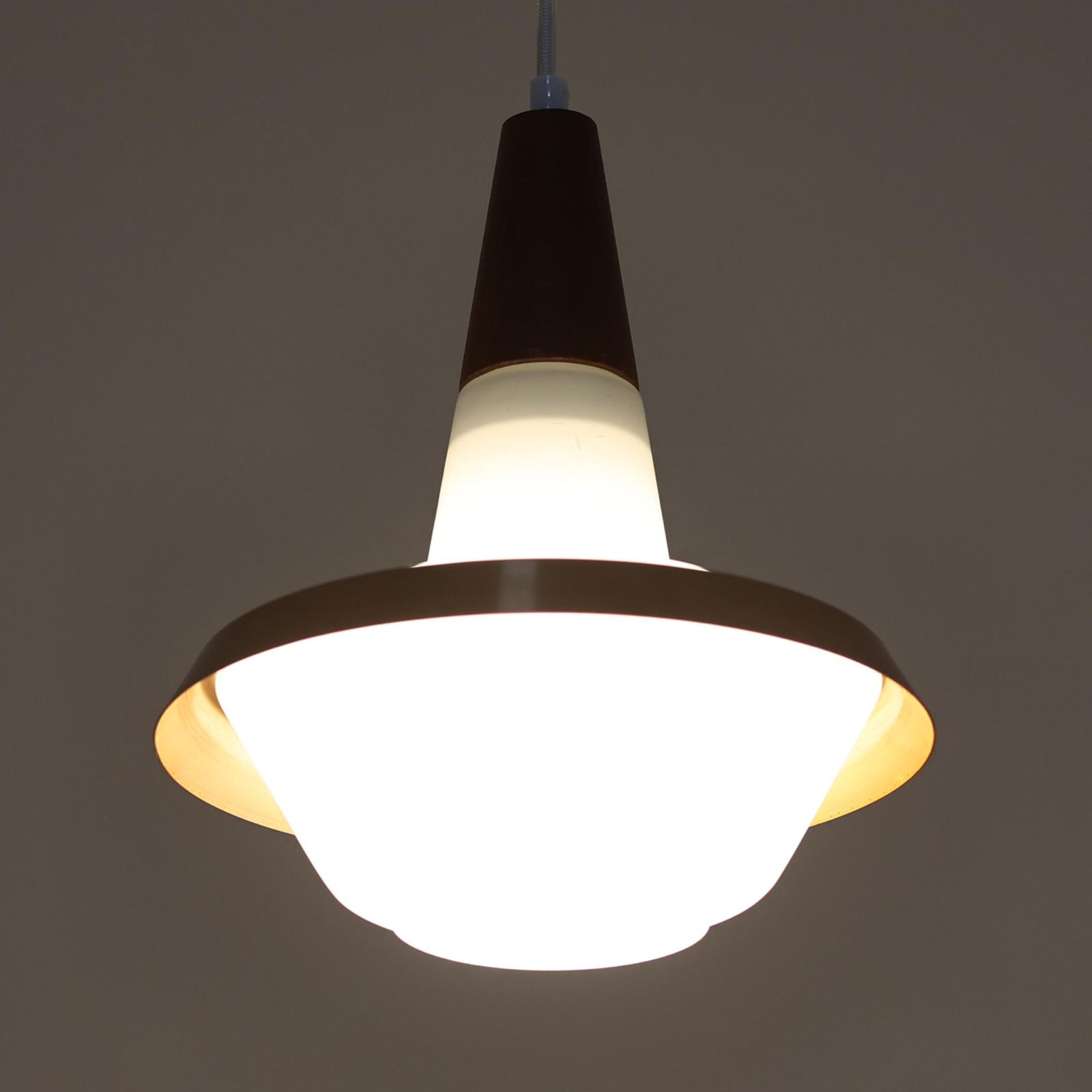 ペンダントライト ガラス×チーク×アルミ 直径25 cm デンマーク製 北欧ビンテージ照明 吊り下げ照明 ブラウン系照明 DK 18652