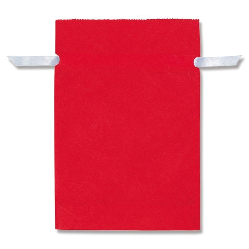 ギフトにおすすめのリボン付不織布巾着袋です。マチが付いているのでたっぷり入ります。赤無地とシンプルな袋ですが白いリボンがアクセントになっています。