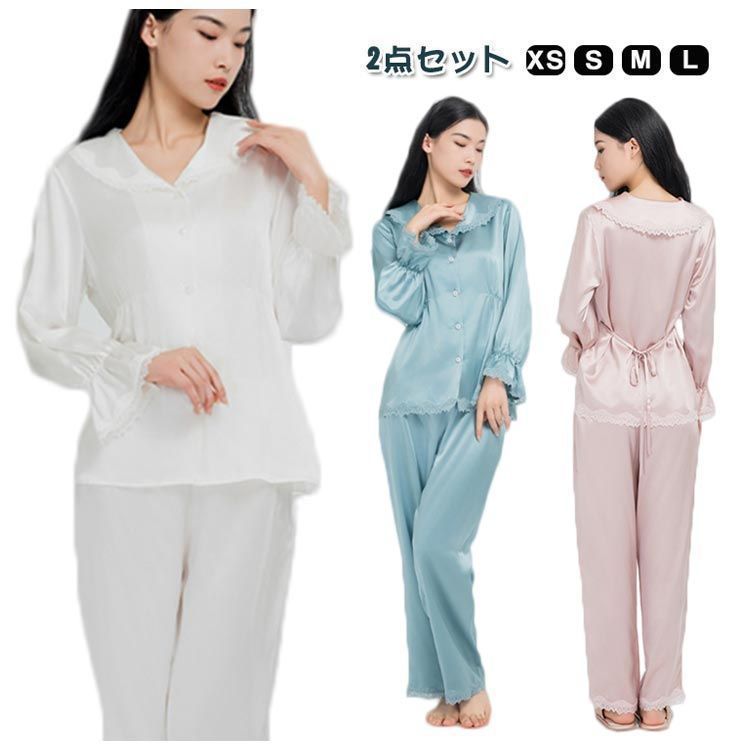 レディース 長ズボン 絹 上下セット 2点セット 夏 長袖 秋 冬 シルク100% シンプル レトロ風 ナイトウェア 保湿 部屋着 ゆったり 美肌 フリル 春 パジャマ 前開き ルームウェア