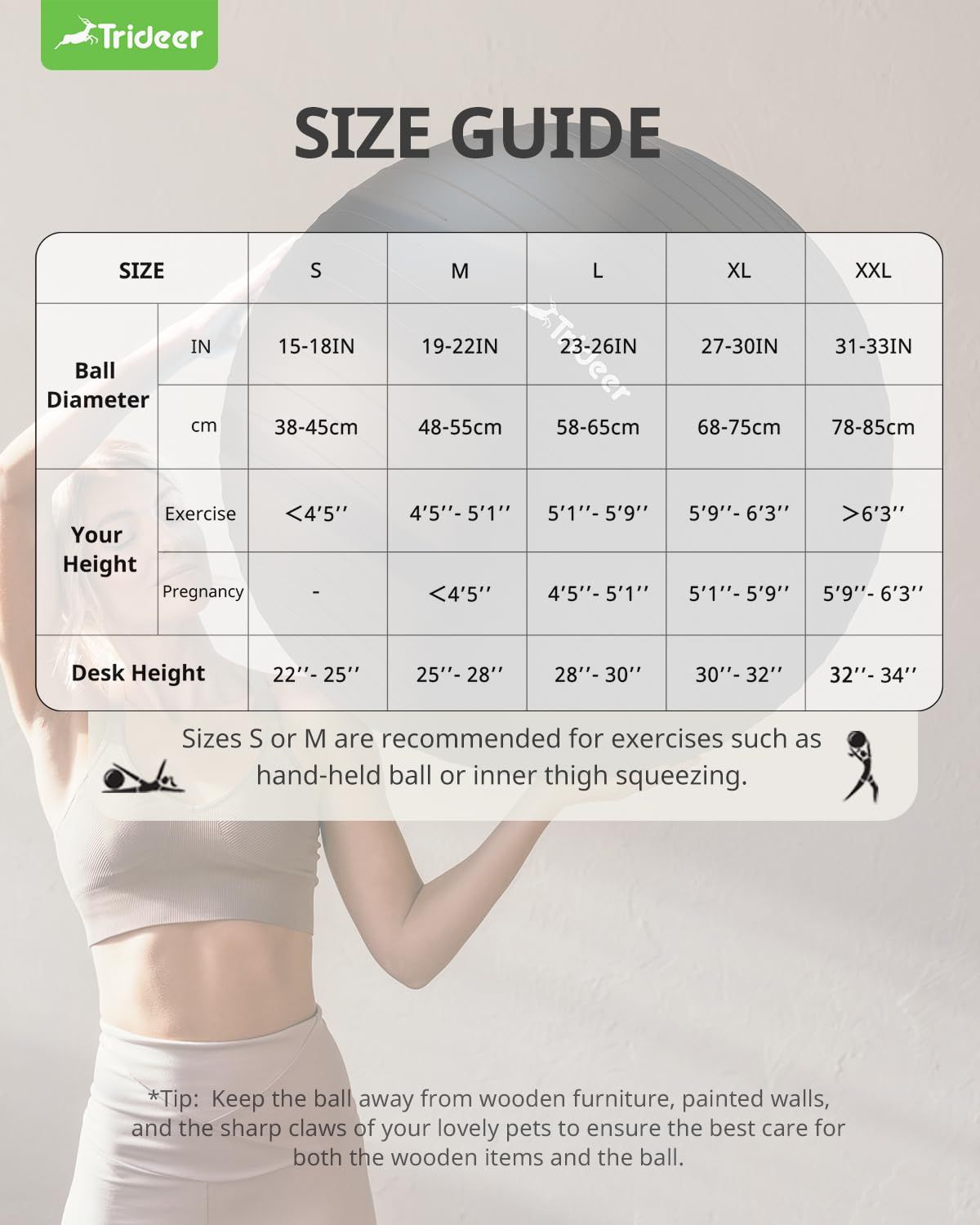 5つのサイズがあり、45cm 55cm 65cm 75cm 85cmでお客様の特別なニーズを満たします。木製や絵画はエクササイズボールには不向きです。