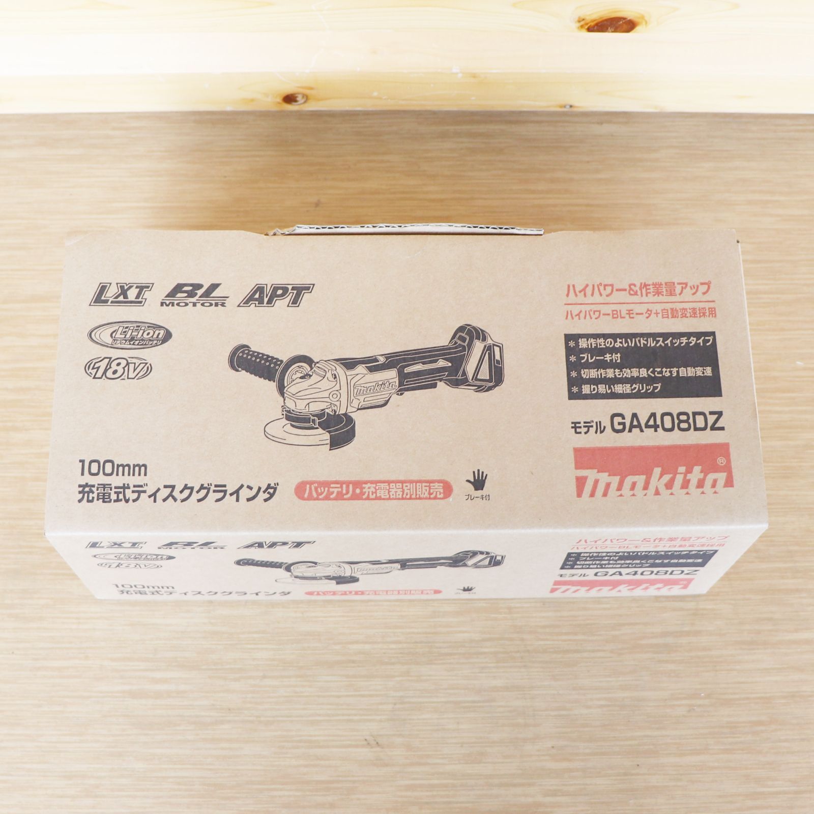 新潟発 makita 充電式ディスクグラインダ GA 408 DZ 100 mm ブレーキ付 本体のみ 切断 研磨 研削 バリ取り 電動工具 加工 マキタ