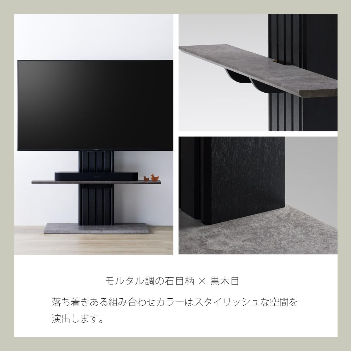 石目×ブラック シアターバー設置 幅100 cm 背面収納 VESA規格100 400 mmまで対応 40 65型 棚取り外し可 Pilast 壁寄せテレビスタンド PLW-1210 TV-BK 朝日木材加工