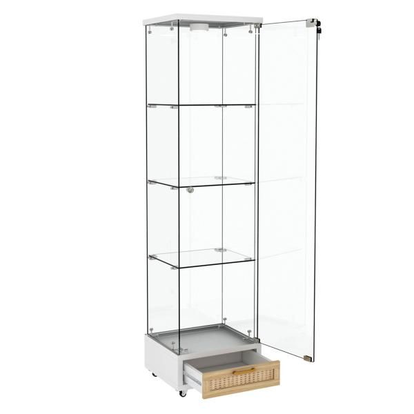 ケース シェルフ 1ドア4段 ガラスディスプレイキャビネット 強化ガラス LED照明 キャスター付き 鍵付き リモコン ガラスケース 爆買