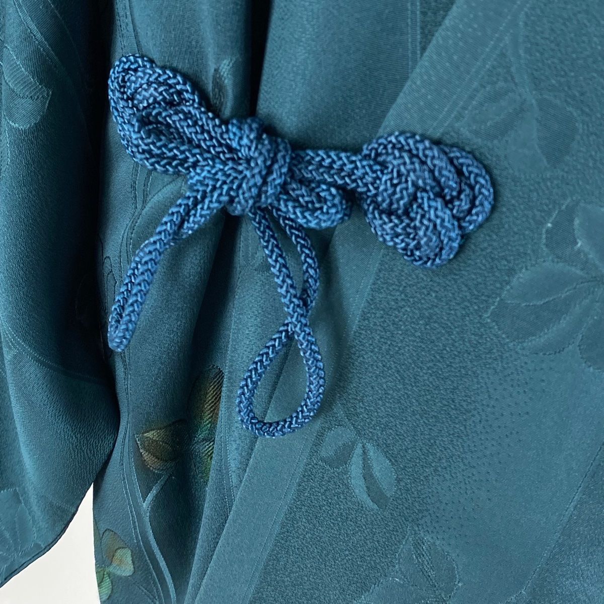 道中着 身丈97 cm 裄丈66.5 M 和装コート 葉柄 縞 深緑 正絹