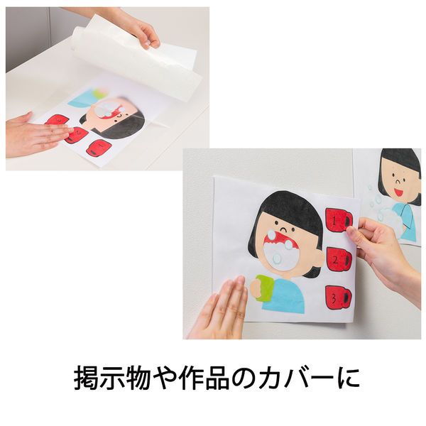 ○作業時にシワが出来にくく、貼った直後は貼り直しもOK!学校やオフィス、ご家庭で。