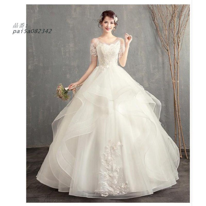 袖あり ロング丈ドレス ウエディングドレス パーティードレス ステージ衣装 二次会 披露宴 結婚式卒業式 ナイトドレス 成人式 プリンセスライン お呼ばれ pai 5 a 082342