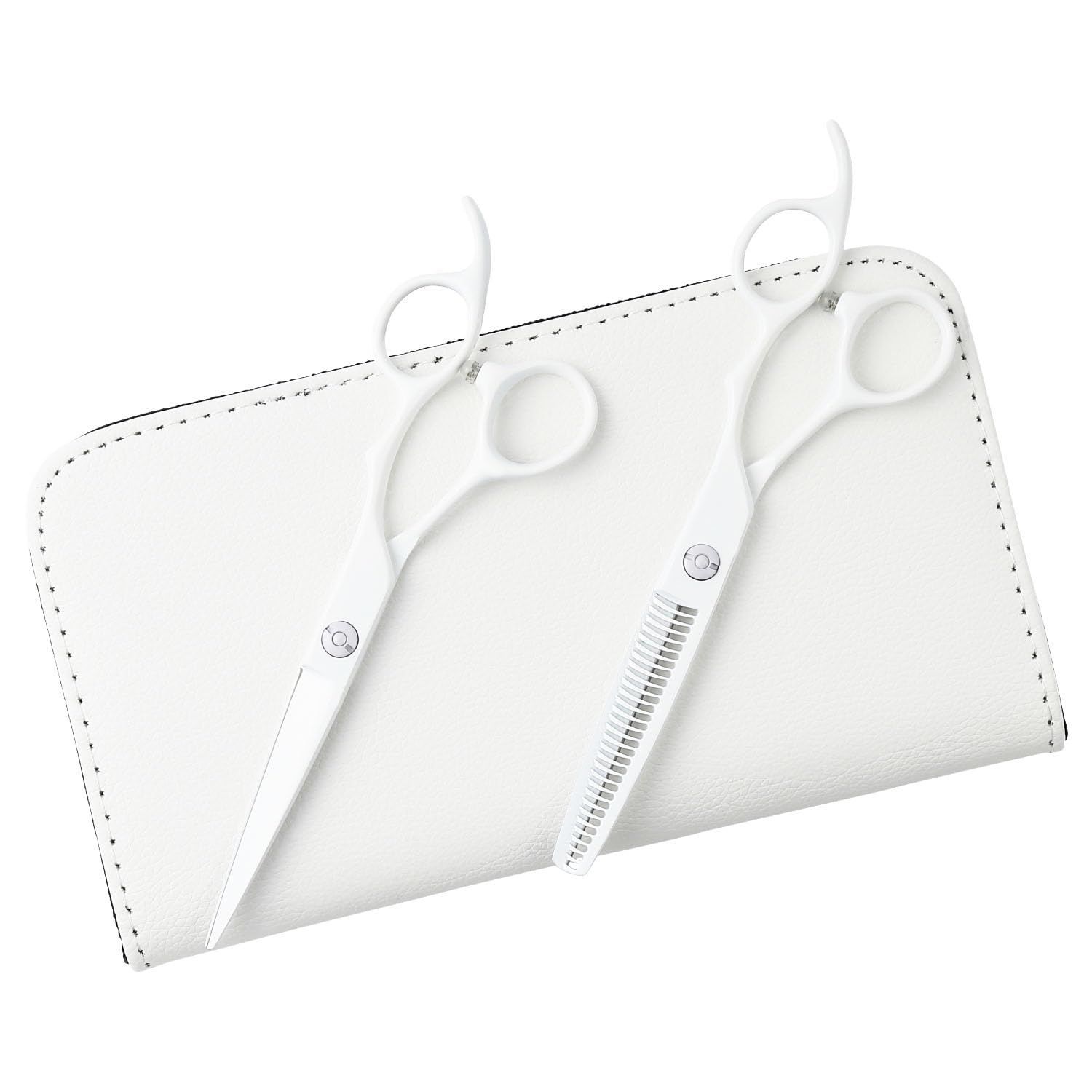 PF DEEDS GTZ ホワイト シザー 6.0インチ セニング スキ率25%前後 美容師 理容師 理容 散髪 はさみ ケース付き 2本セット
