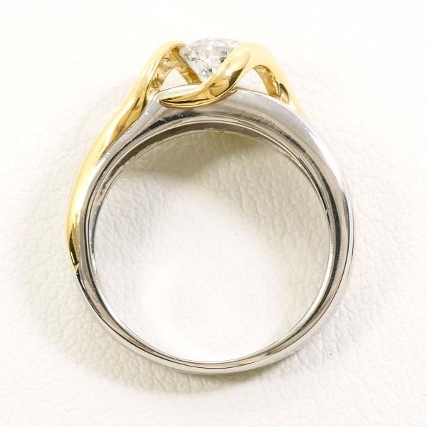 【コメント】 中央の天然ダイヤモンドが上質な輝きを放つリングです。プラチナの気品ある輝きと、イエローゴールドの温かみあるラインが絶妙に調和しています。立体感のあるデザインが指先を美しく演出し、上品さと存在感を兼ね備えた魅力的な逸品です。