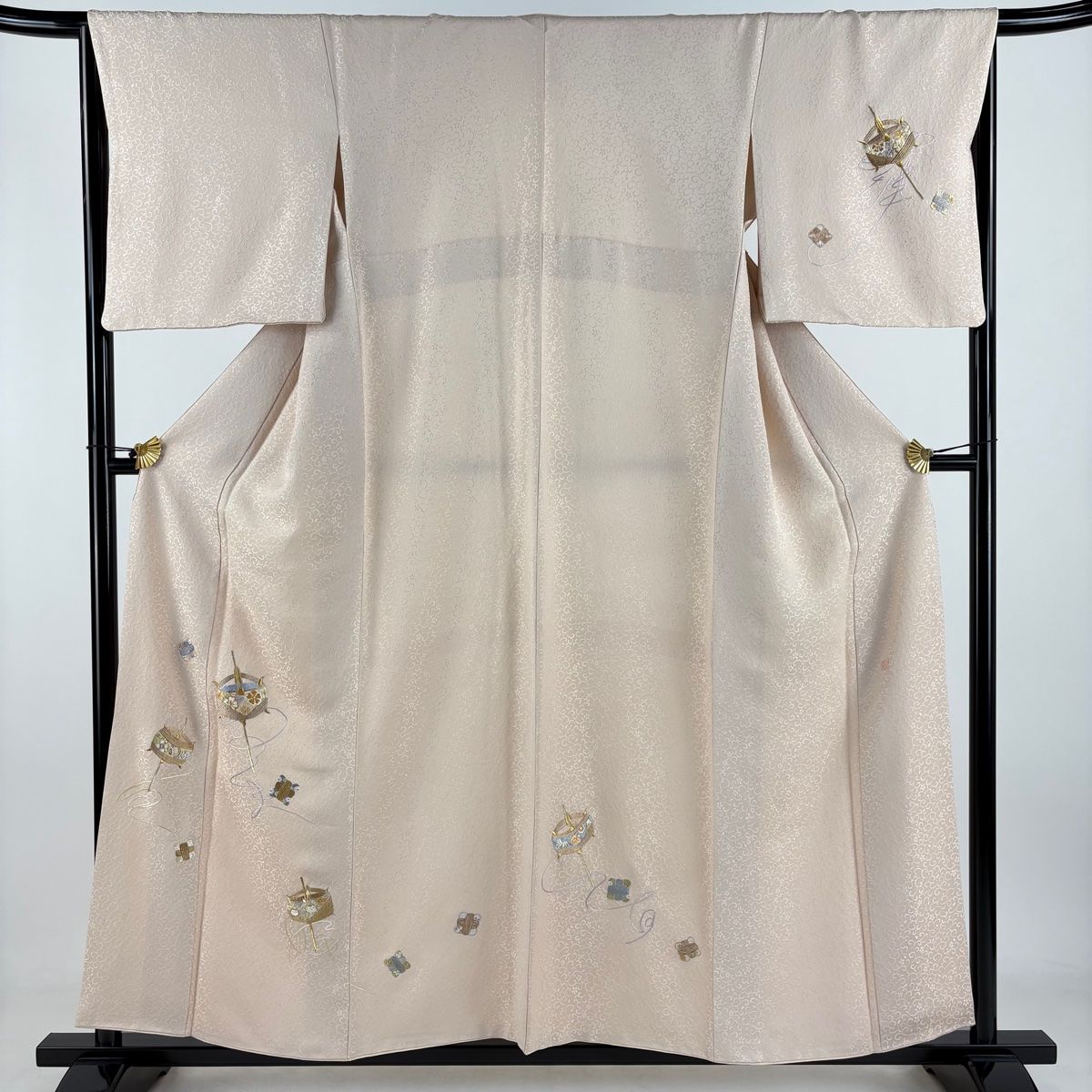 付下げ 身丈157 cm 裄丈66.5 M 袷 山口美術織物 落款 糸巻き 地紋 金銀糸 刺繍 薄ピンク 正絹