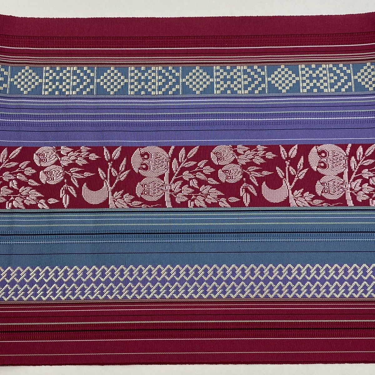 名古屋帯 証紙 博多織 八寸名古屋帯 松葉仕立て やまと ふくろう 間道 えんじ色 正絹